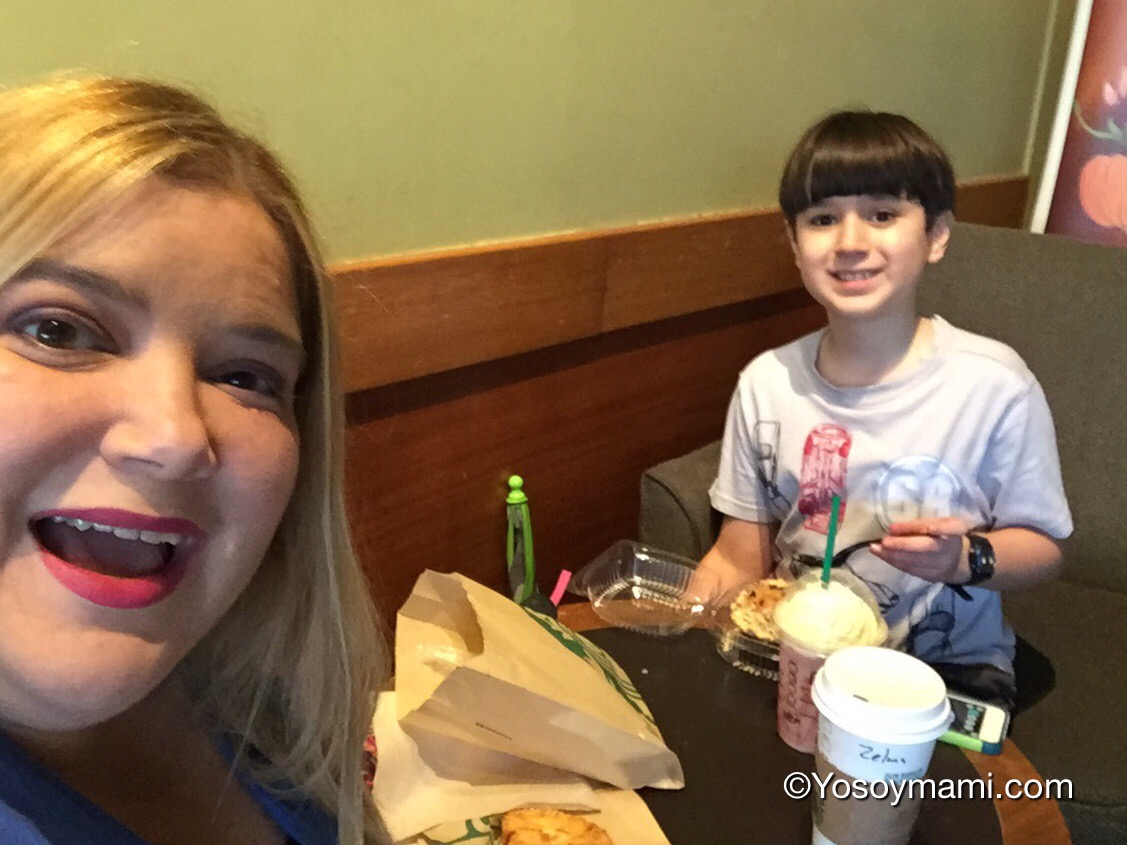 Lil Man y yo celebrando nuestros respectivos cumpleaños en Starbucks