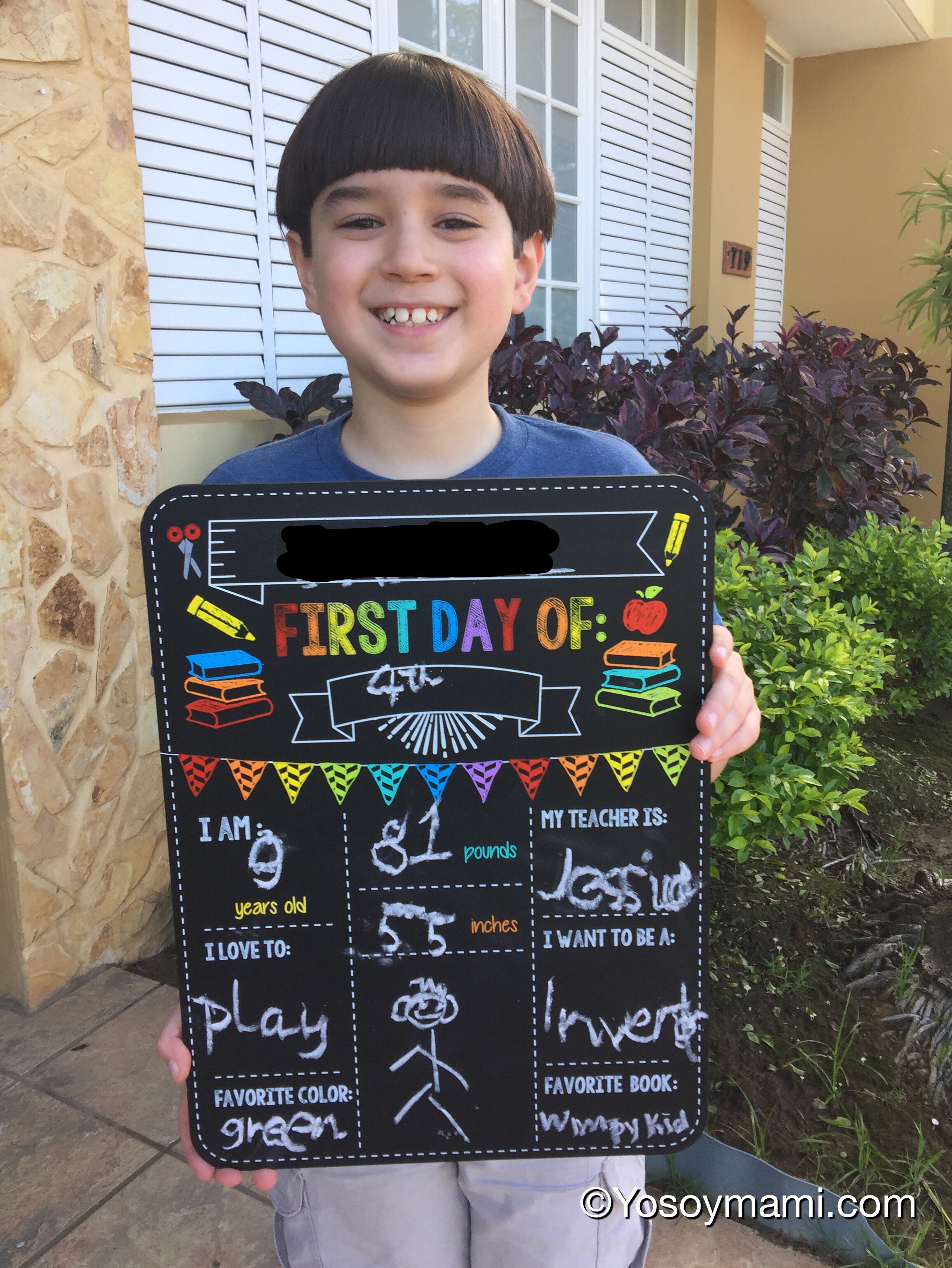 La semana pasada muchos niños de Puerto Rico regresaron a la escuela, y nunca falta la tradicional foto del primer día de clases. Este año la hicimos con esta pizarra que una amiga me consiguió en Target y me la envió desde US, y me encanta!!