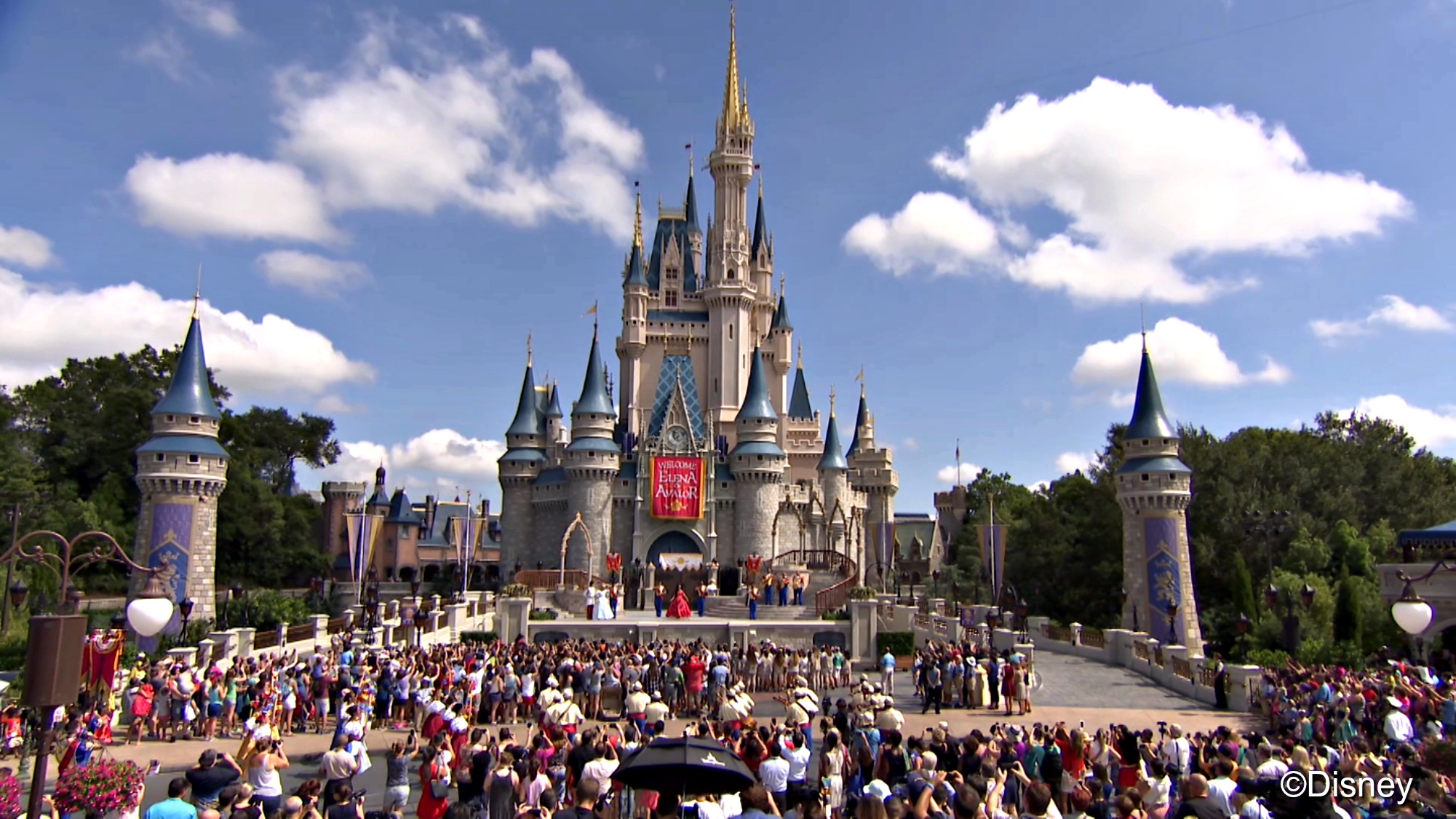 Pues como era de esperarse, ella decidió visitar el mundo mágico de Disney y todos acudieron a verla!! El jueves 11 de agosto de 2016, Cenicienta y su príncipe azul la recibieron por primera vez en Magic Kingdom de Walt Disney World. Ella llegó al castillo con toda su comitiva, saludó a todos los invitados, e interpretó la canción “My Time”.