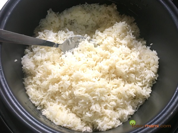 - Cocina el arroz blanco a tu gusto. Yo uso una arrocera, y le añado agua, un poco de sal y aceite de oliva. Haz la cantidad que necesites para que tengas 5 tazas de arroz cocido.