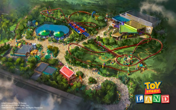 Los visitantes se verán “reducidos” al tamaño de un juguete cuando entren en esta colorida área repleta de queridos juguetes, piezas para armar y juegos de mesa gigantescos. A lo largo de 11 acres que recrean el patio de Andy de las películas de “Toy Story” de Disney•Pixar, los visitantes se sumergirán en el maravilloso mundo donde Woody, Buzz, Jessie y todos sus amigos salen a jugar. Las atracciones y experiencias, provenientes directamente de la imaginación de Andy, hará que los visitantes del parque disfruten del mejor recreo de sus vidas, incluso después de que se enciendan las lucecitas de juguete tipo Tinker Toy.
