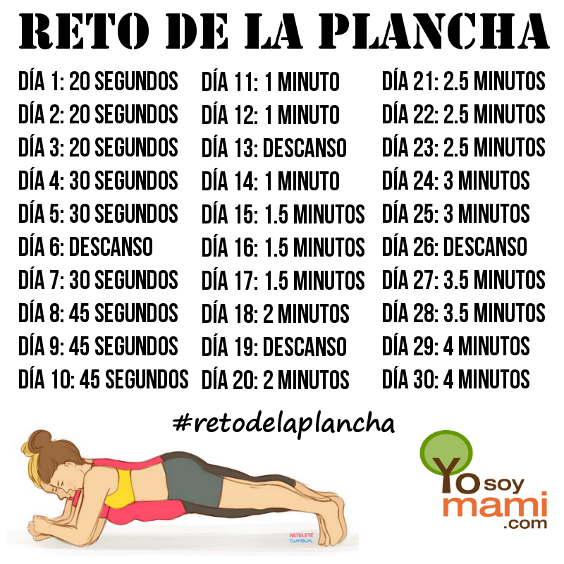 Los planks son excelentes ejercicios de resistencia. Yo los incluí en mi schudule de ejercicios para llevarlos a acabo así como propone el reto, pero además complemento con otros ejercicios de brazos y piernas